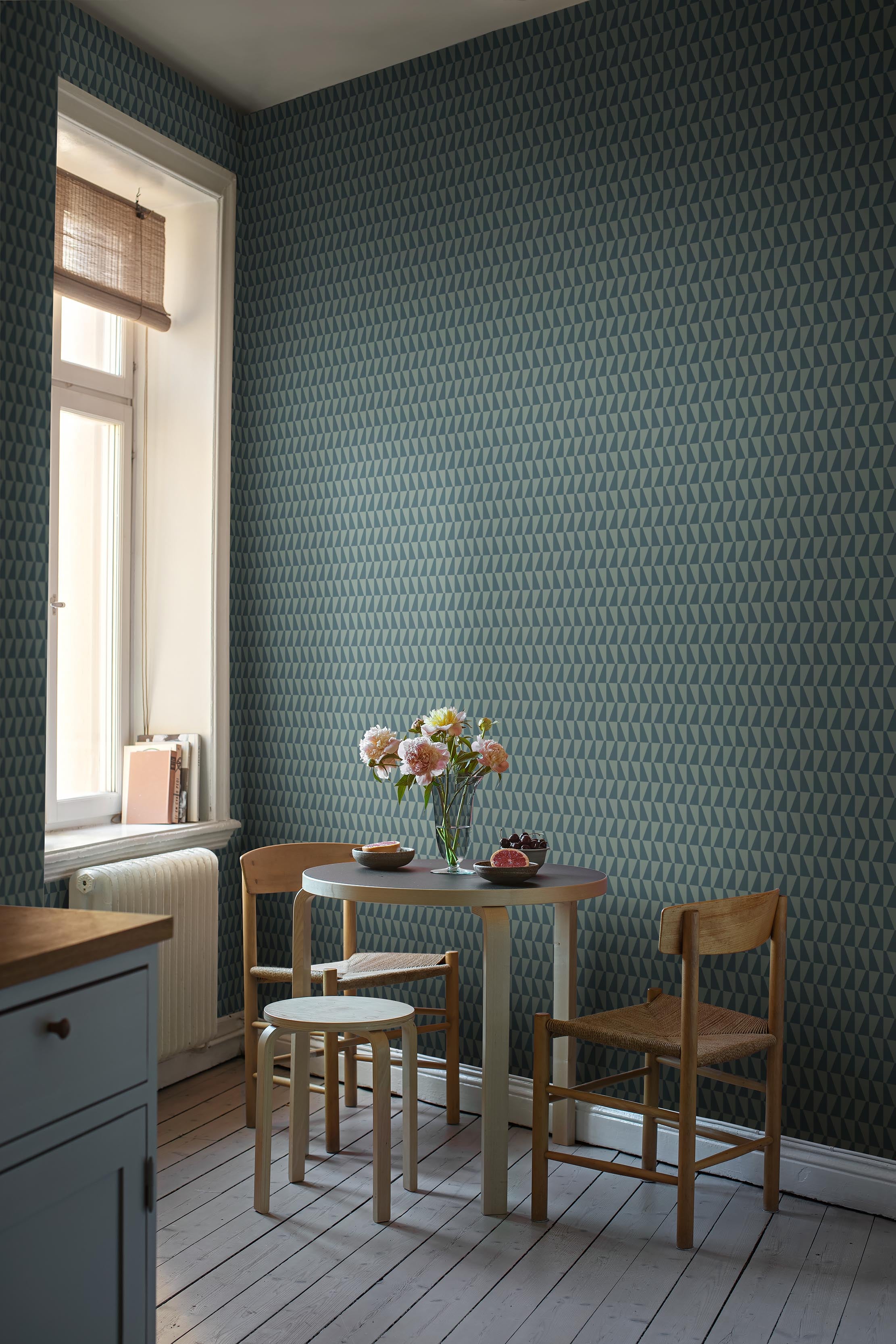 Formstarka, grafiska tapeter – nya mönster men även välkända klassiker av formgivare som Arne Jacobsen, Alvar Aalto och Linnea Andersson.