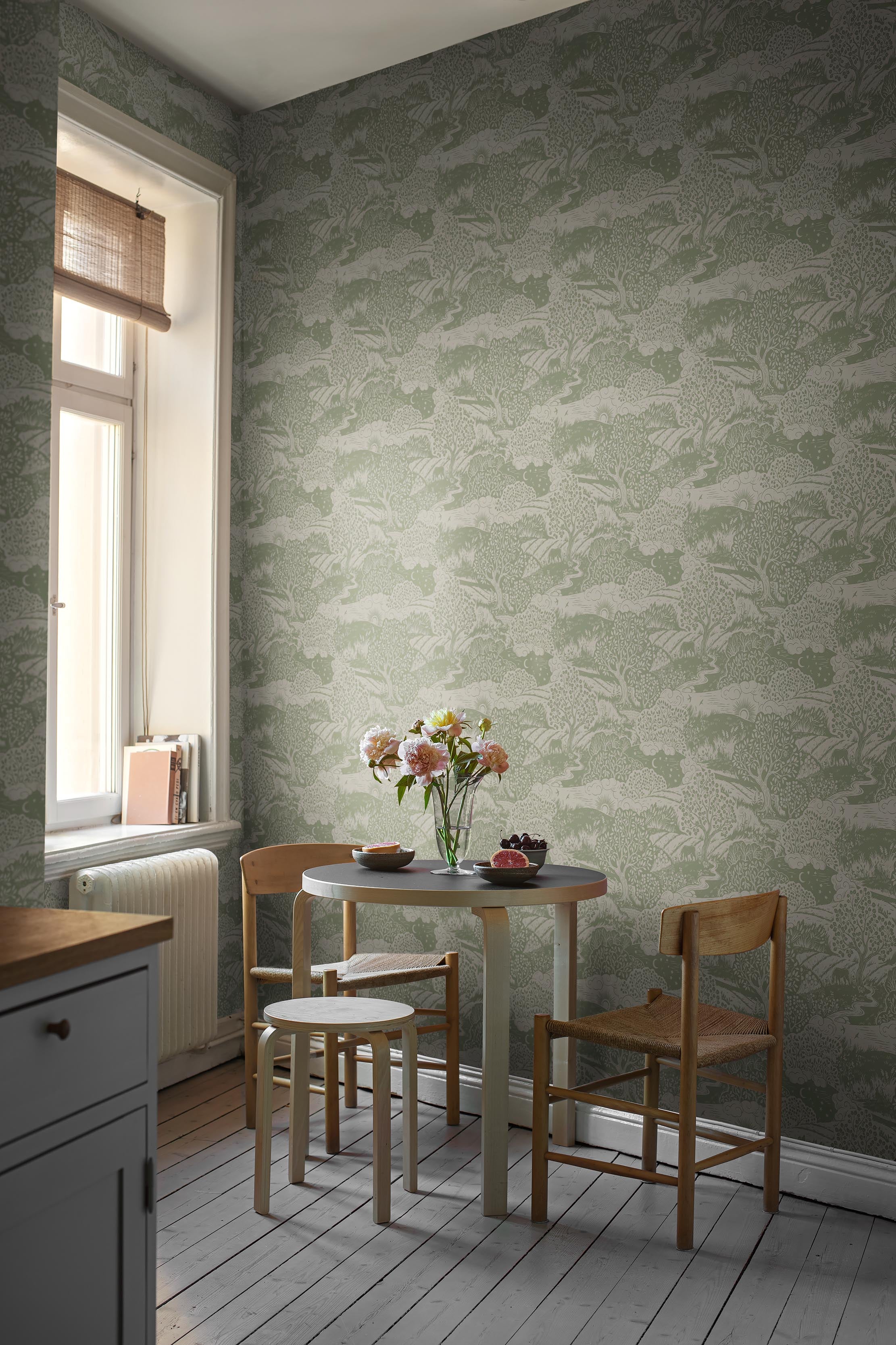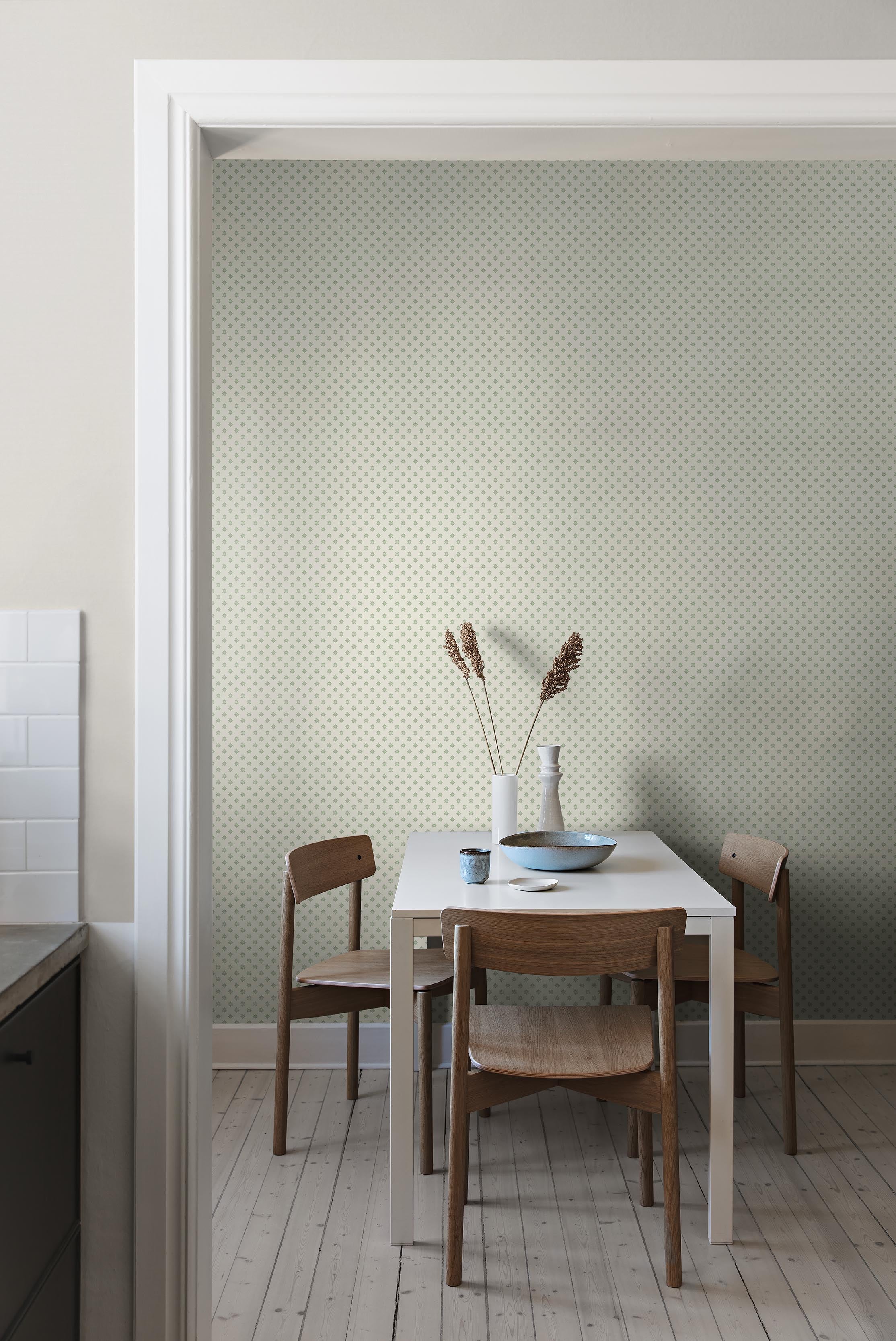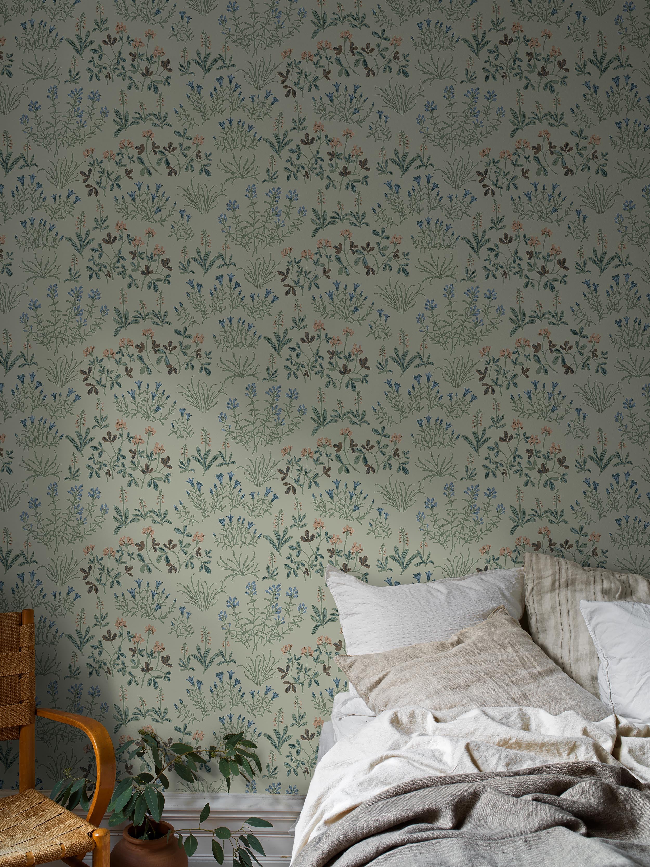En lustfylld, jordnära mönstermix i en mjuk, ombonad färgskala. Hela tapetkollektionen genomsyras av nordisk natur och hantverkstradition.