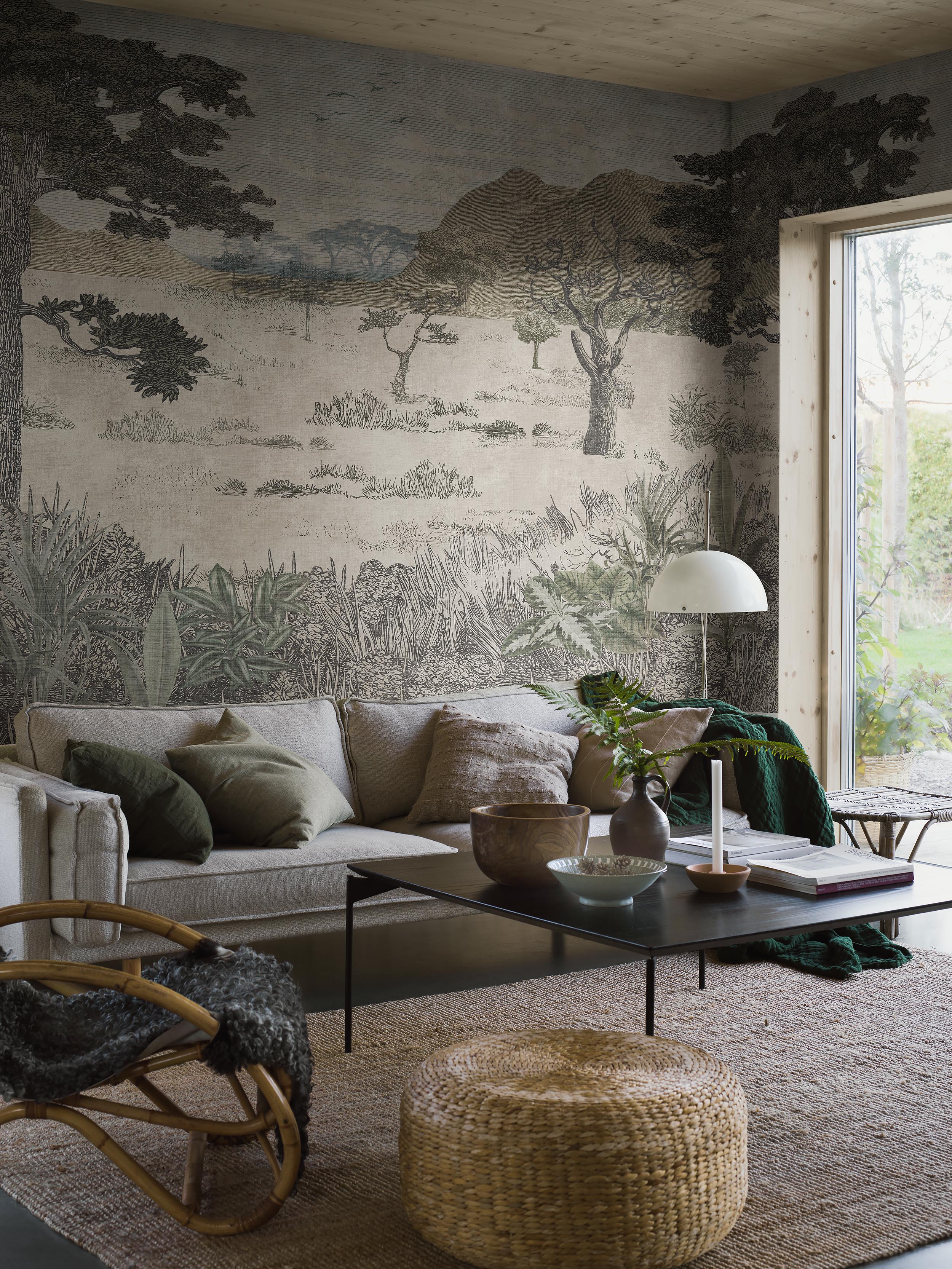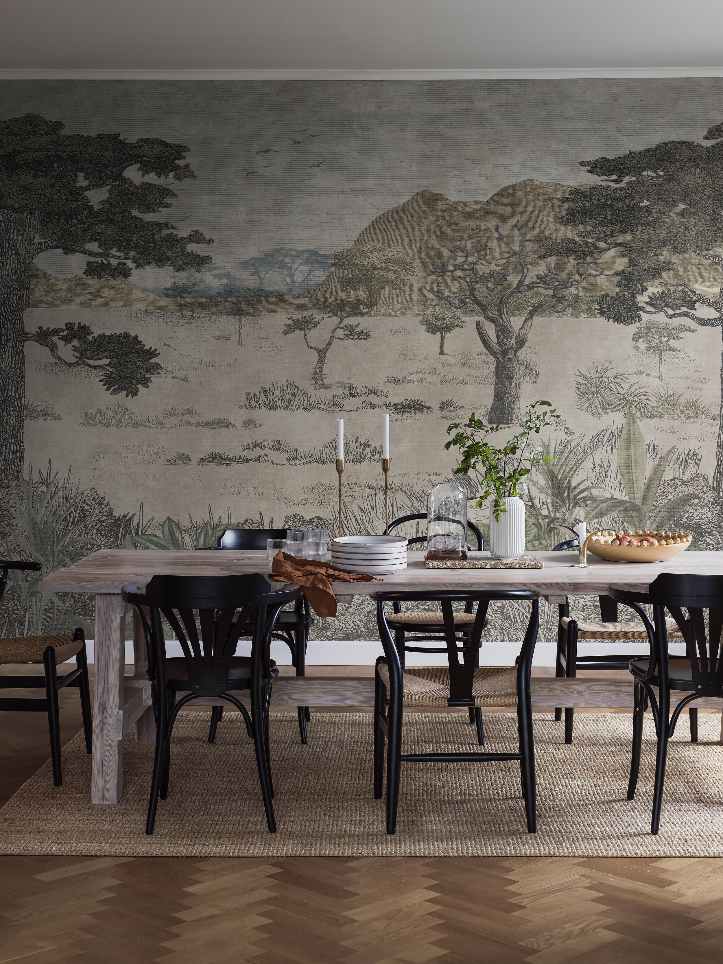 Ange dina väggmått (dra inte av för fönster och dörrar) och justera motivet genom att dra med musen. Vi rekommenderar att du beställer 5-10 cm extra på bredden och höjden. Minimum 3m².