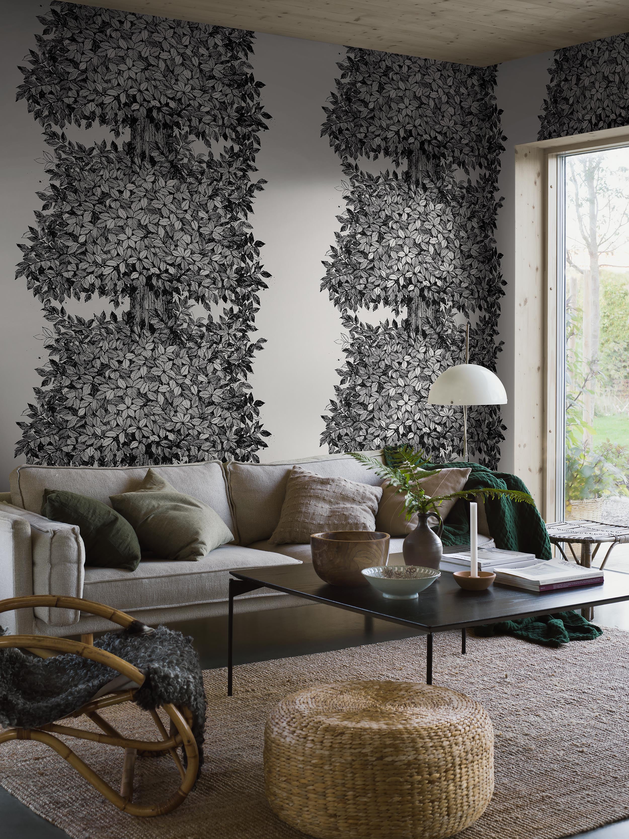 Ange dina väggmått (dra inte av för fönster och dörrar) och justera motivet genom att dra med musen. Vi rekommenderar att du beställer 5-10 cm extra på bredden och höjden. Minimum 3m².